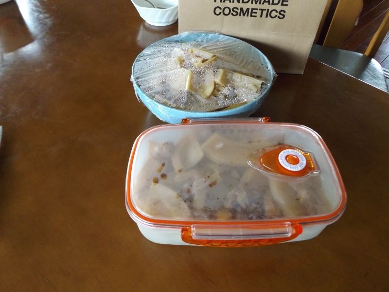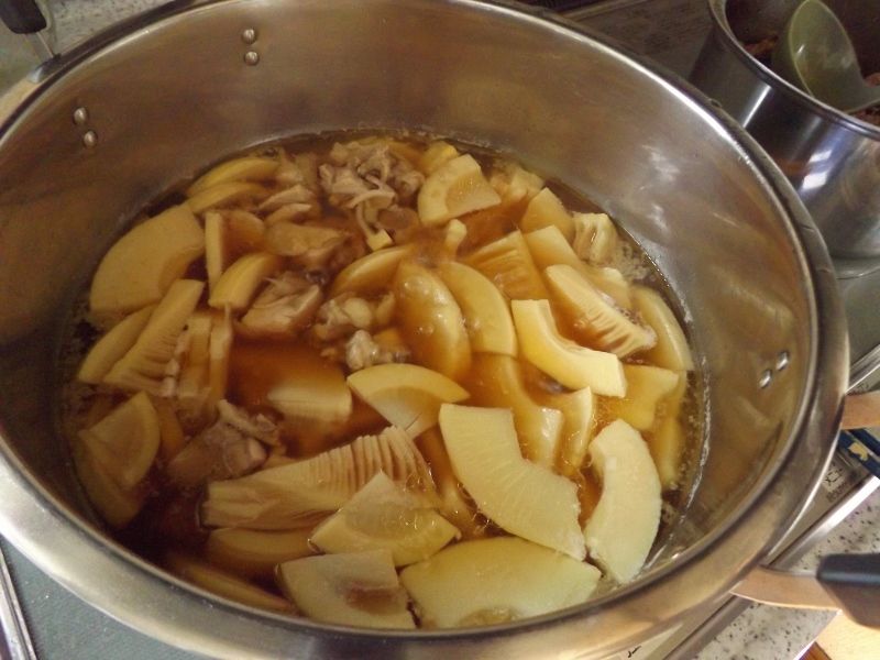 妻はというと、ご近所さんから頂いた初物の筍を煮てます。