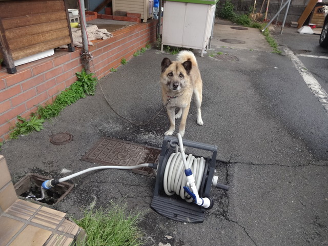 あっ、ジロウクンが散歩から、帰りました。