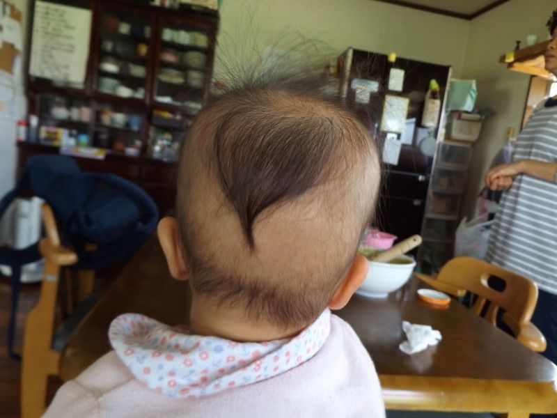 頭の毛が擦り切れて薄い美月ちゃん、可笑しいでしょう。