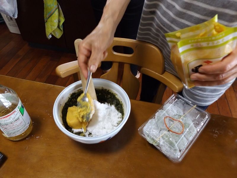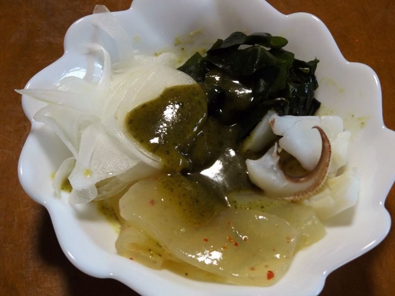 イカや新タマネギ、刺身こんにゃくも調理しておかずが増えたね。