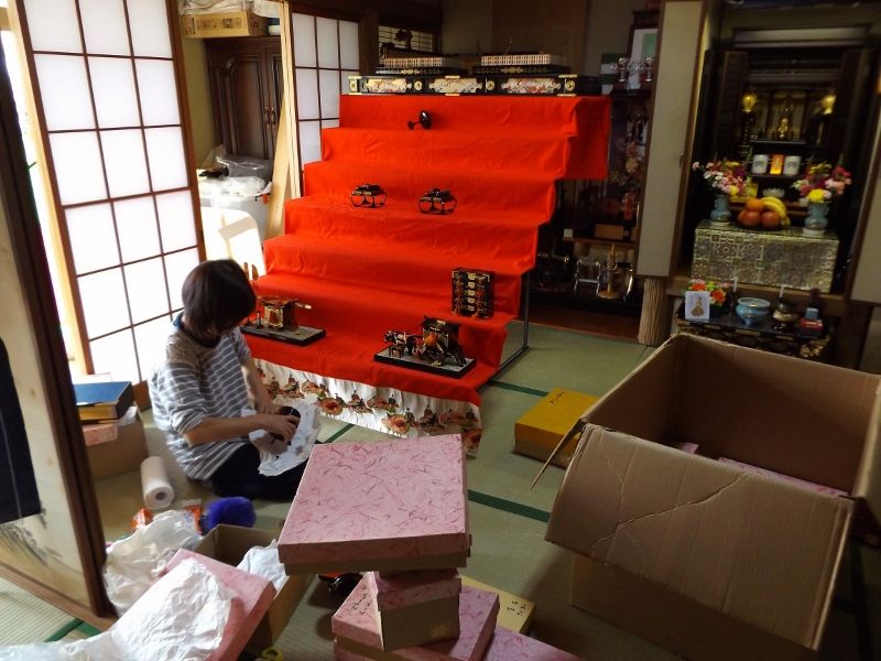 今日は、お雛様を片付けで、代わりに稚児甲冑を飾ろうとしてます。