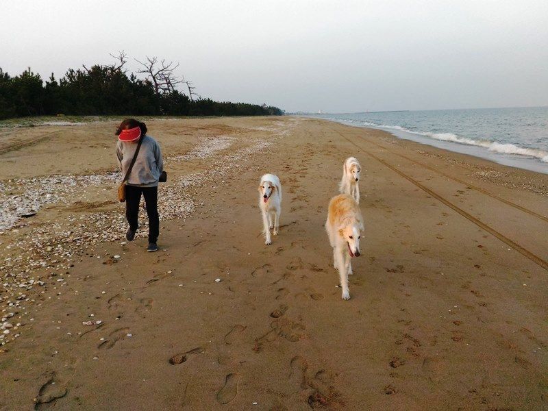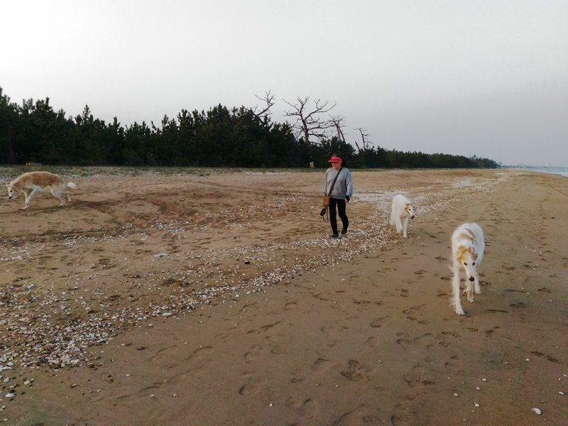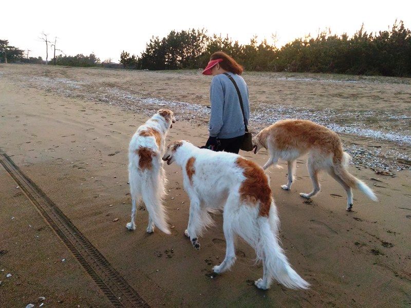 海岸まで歩いてくると、カイ君の息が荒くなる