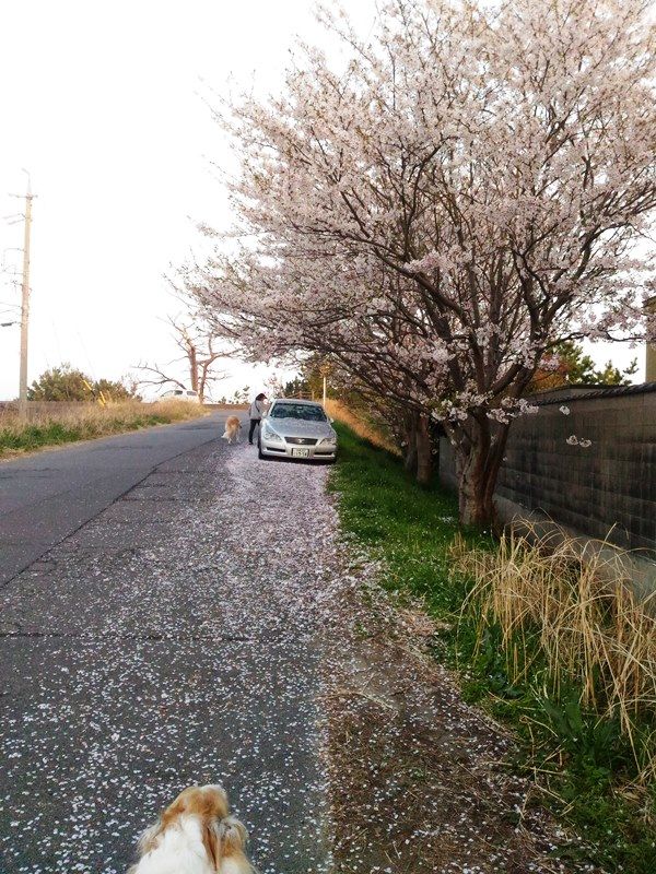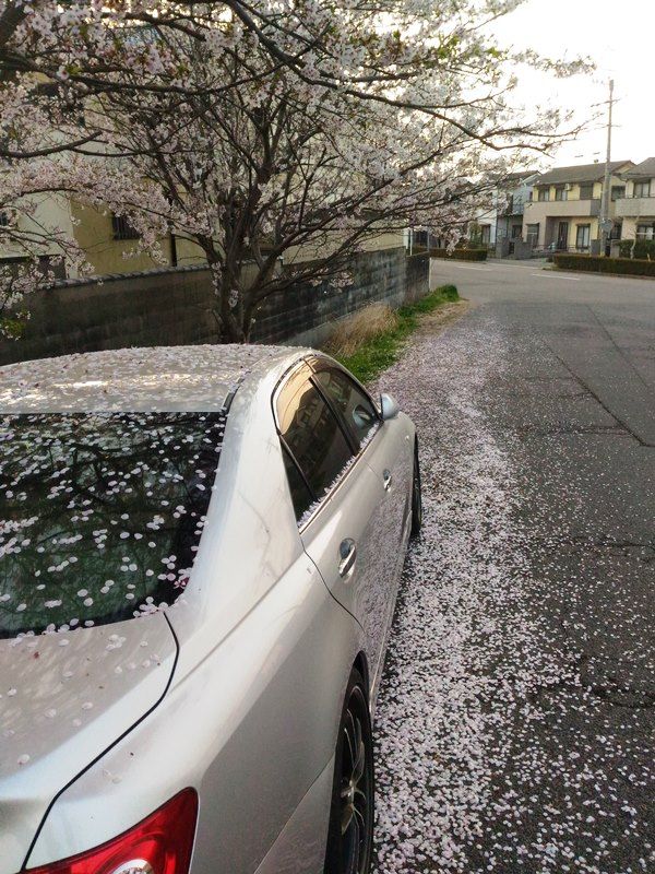 どれほどの間駐車していたのか、車の上にも花びらが載る