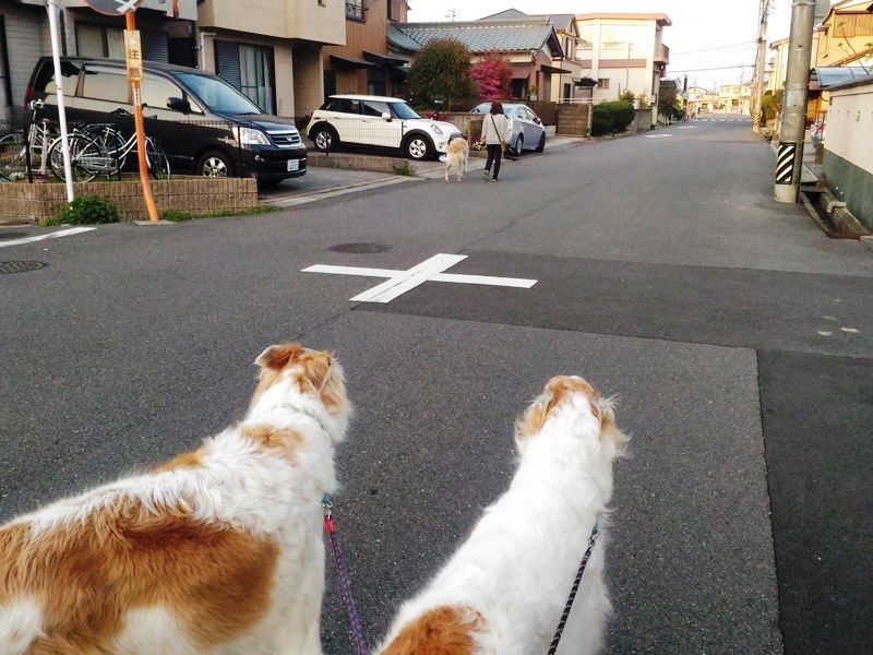 散歩に出るとどうしてもカイ君の歩く速度が遅くて遅れてゆく