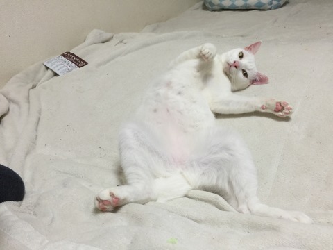 この画像の時点では11月。 しかしご覧のひらきっぷり。全開は放熱の為みたいな感じでもあったんですが。 何かをアピールしてる風でもあり。 更にひねりが加わります。 やはり、お腹を撫でられたかったのか。 誘って待つのが甘えパターンの麿白先生でした。 ランキングに参加しています。1日1クリック、なにとぞ おねがいしますm(_ _)m