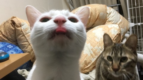 麿白先生はちゅ~るを舐める時だけ何故か邪悪な顔になってました。 ちゅ~る待ちの麿白先生。ここから。 下校途中に買い食い的な悪さをしてる感じの顔。 そして時雉もつられとる。 そんなに好きなんでしょうか。 というか、ちゅ~るの魔力・常習性はヤバいですね。 指だと普通。本当に謎。 ランキングに参加しています。1日1クリック、なにとぞ おねがいしますm(_ _)m