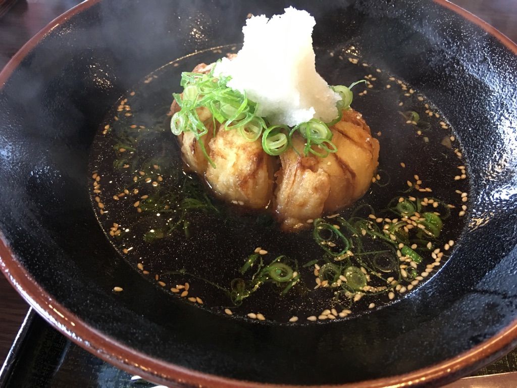 揚げた玉ねぎがゴロリン、つけ麺で食べました。