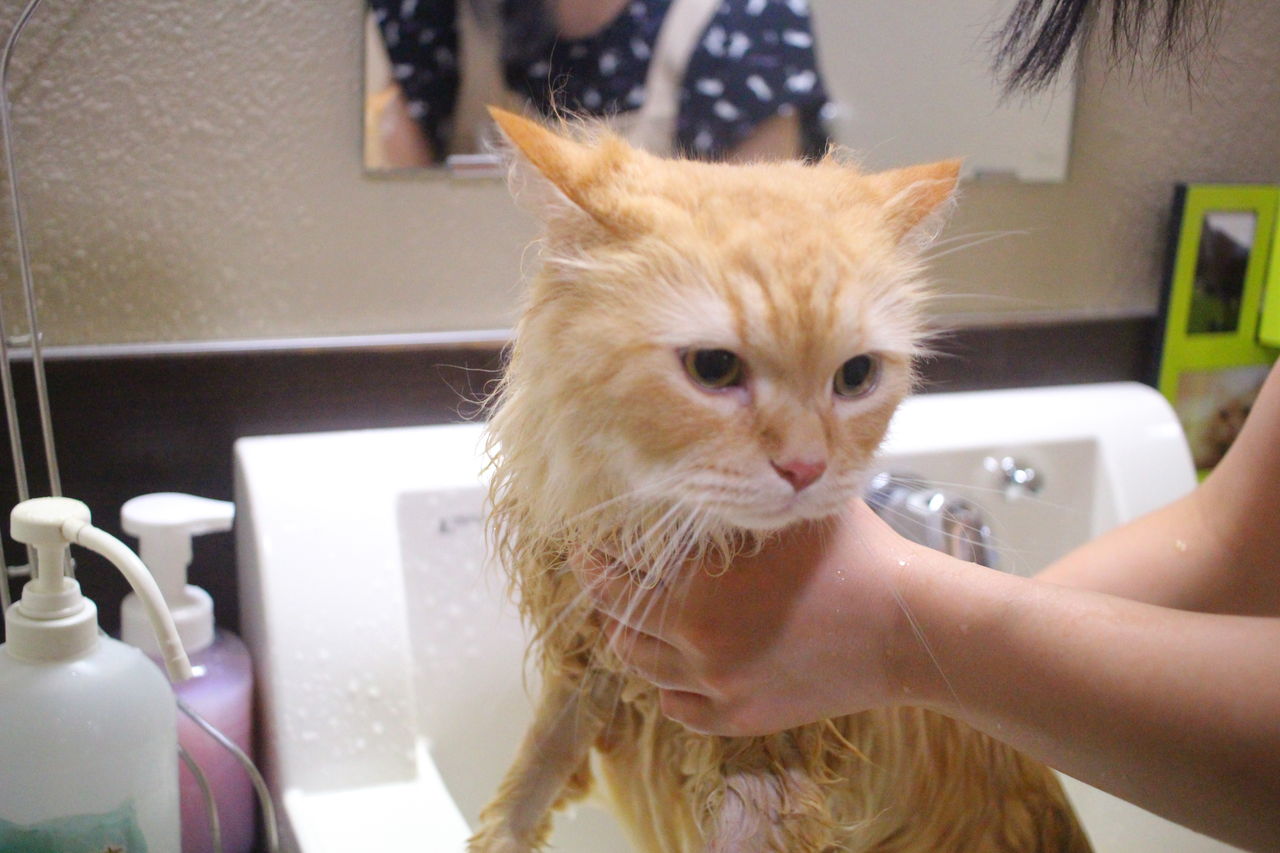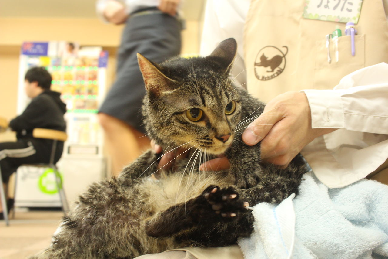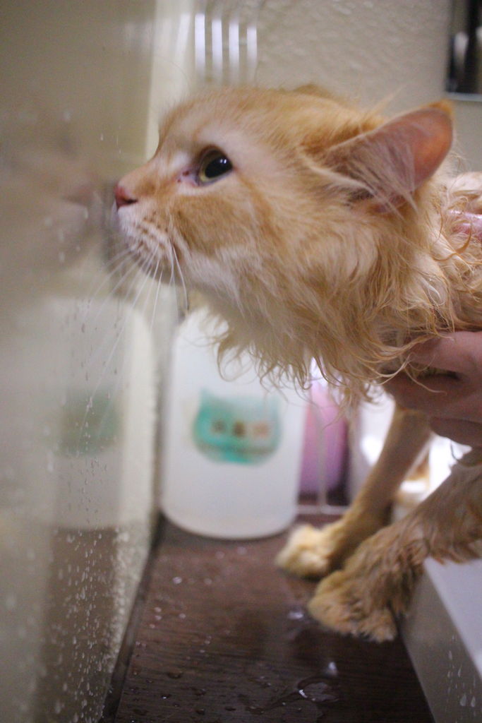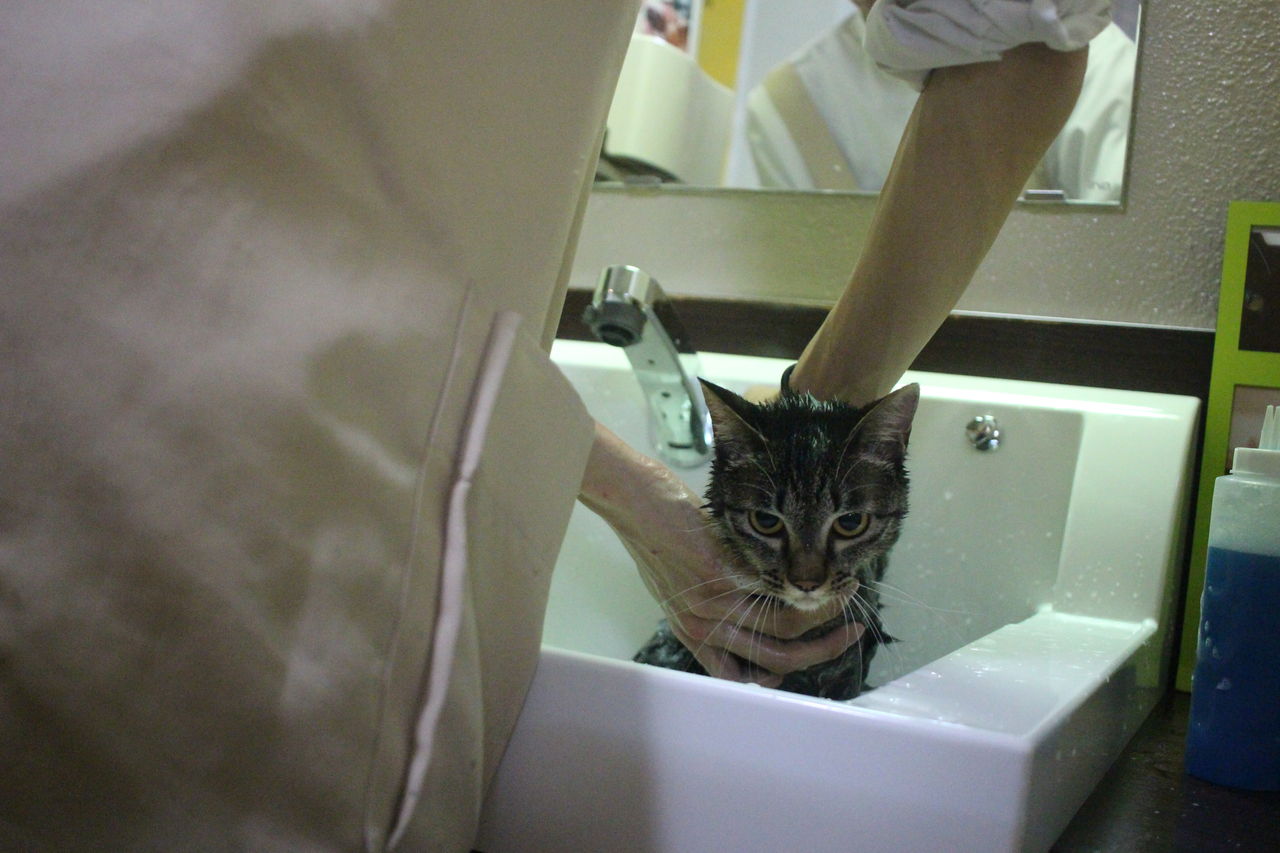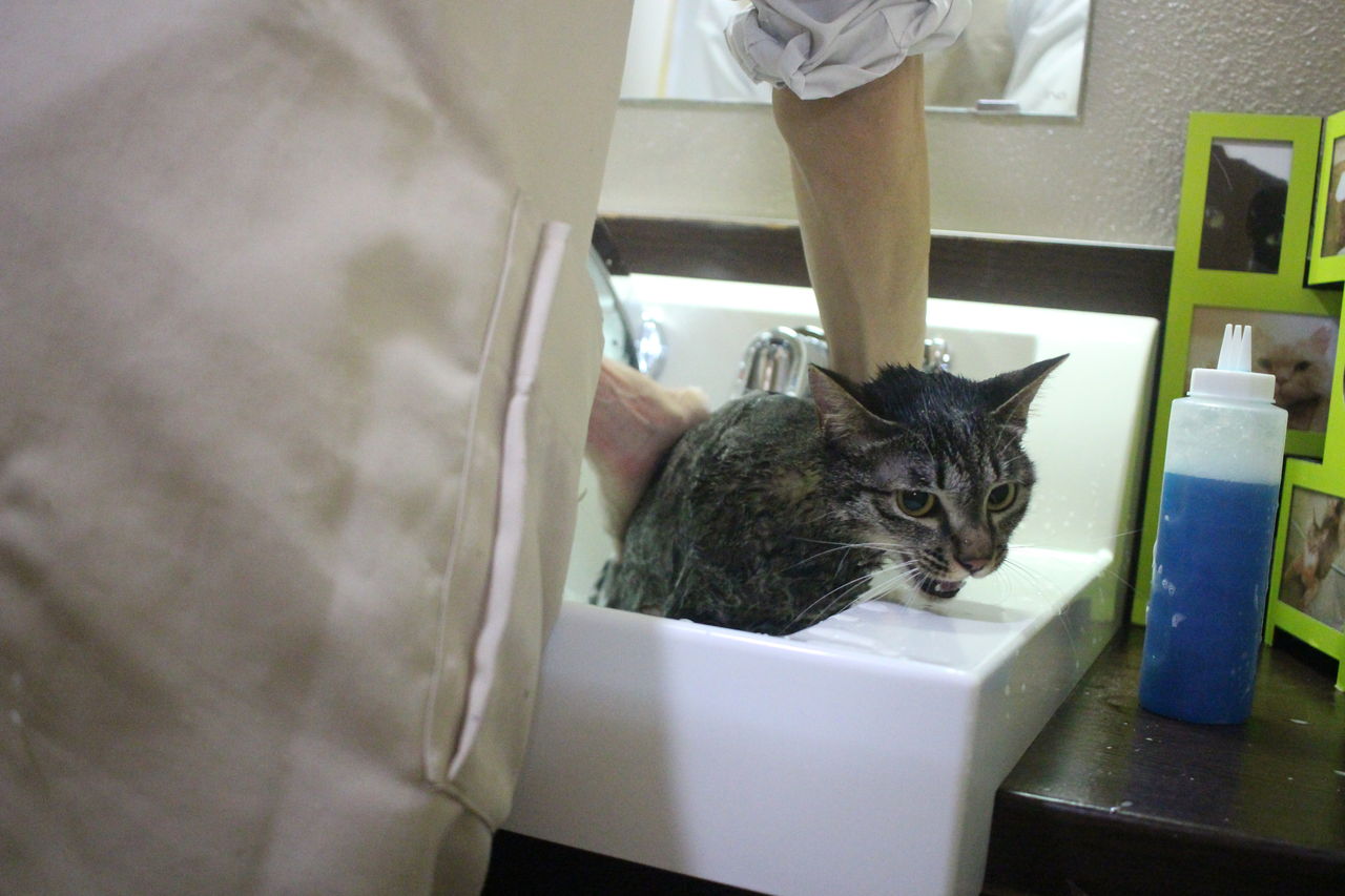 拭いてもらっているときも諦めていません、全力で逃げようとしています