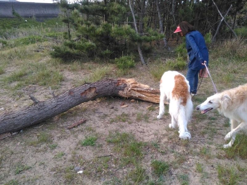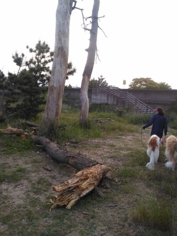 海岸の枯れた大きな松の木の下には、太い枝が、というか幹が折れて落ちている