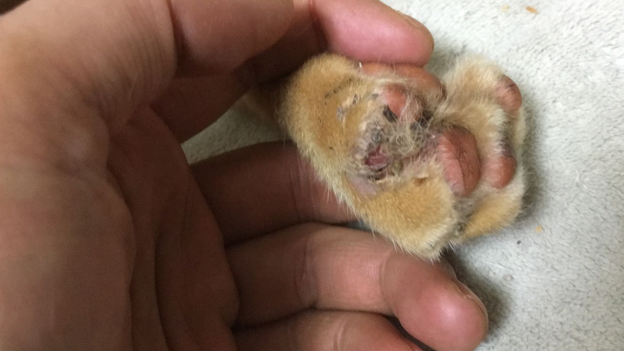 爪が抜けて足が腫れていました。あと、どこか外傷もあったような。