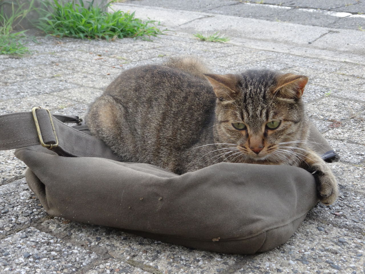 自分のカバンを何故かいつも座布団にしていました。