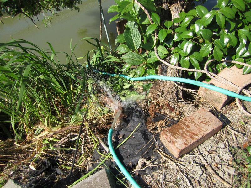 そして帰ってきてからは、裏のクリークの水を水中ポンプで汲み上げられるようにセットしてあげて、これで水撒き代の節約になるかな?