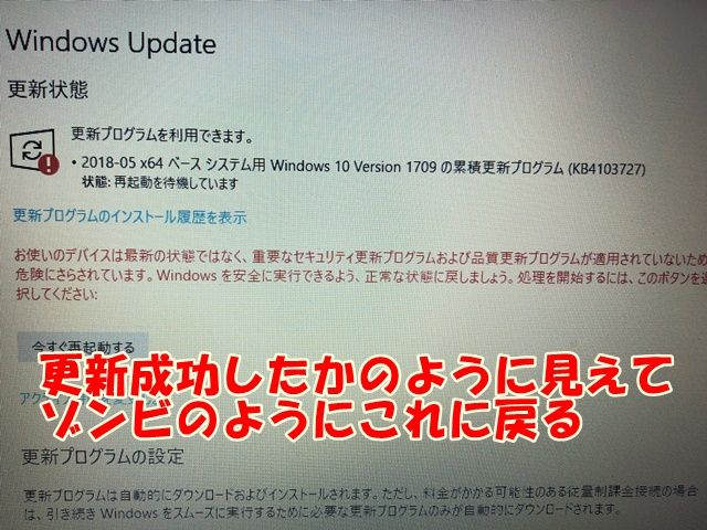 二か月ほど前からwindows10の累積アップデートが更新できなくてね。