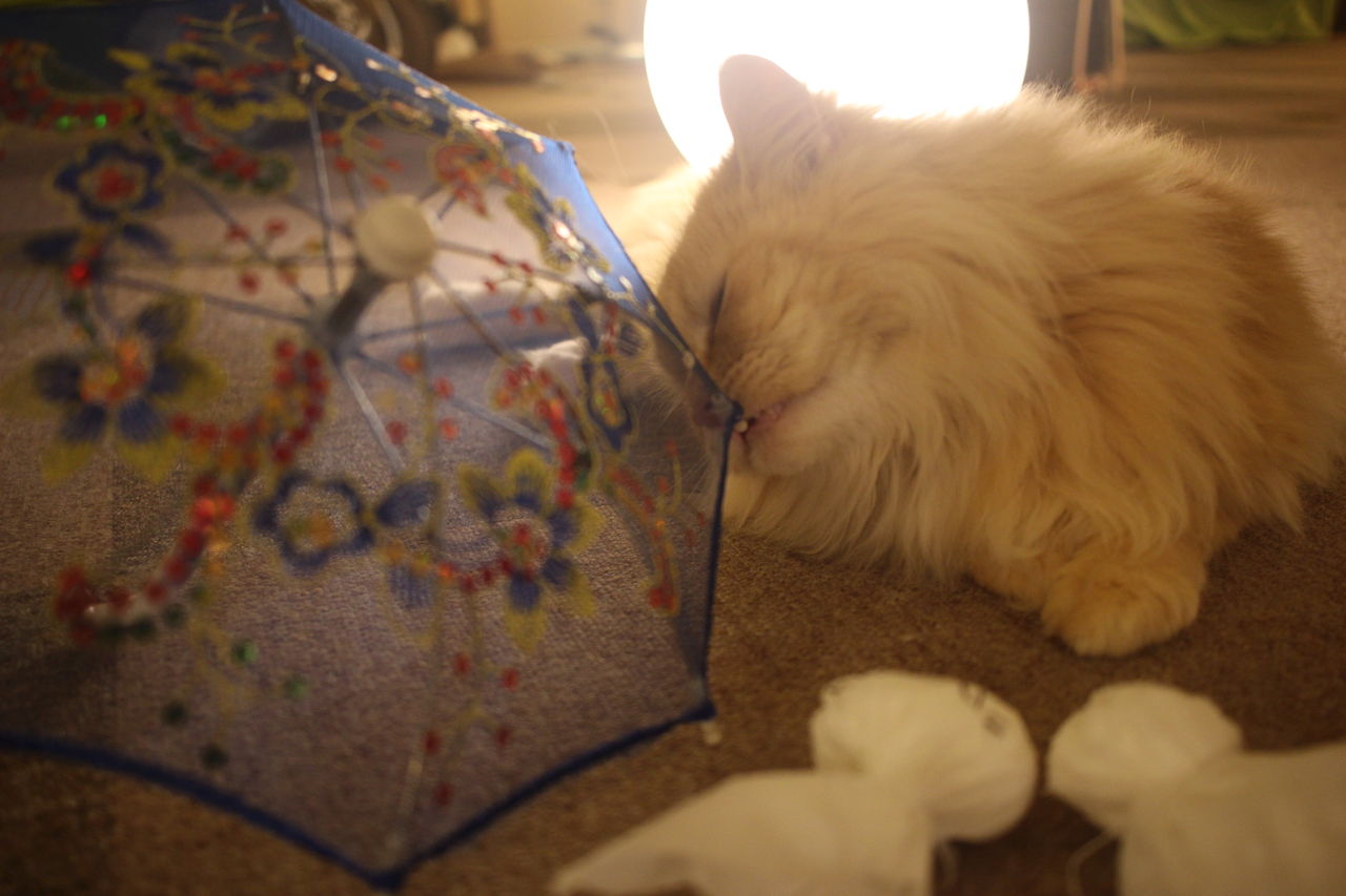 あらあら、茶々さんはカミカミ傘壊さないで😂