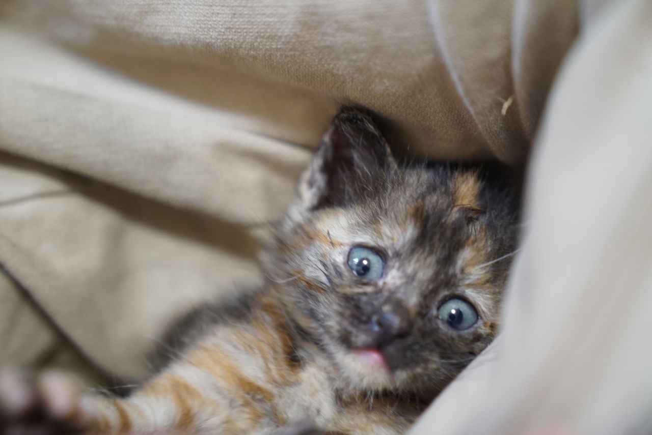 全身全霊で感覚を身に着けている時期。やはりこの時期にひとに触れる事ができればまず家猫になれるのかなあと。