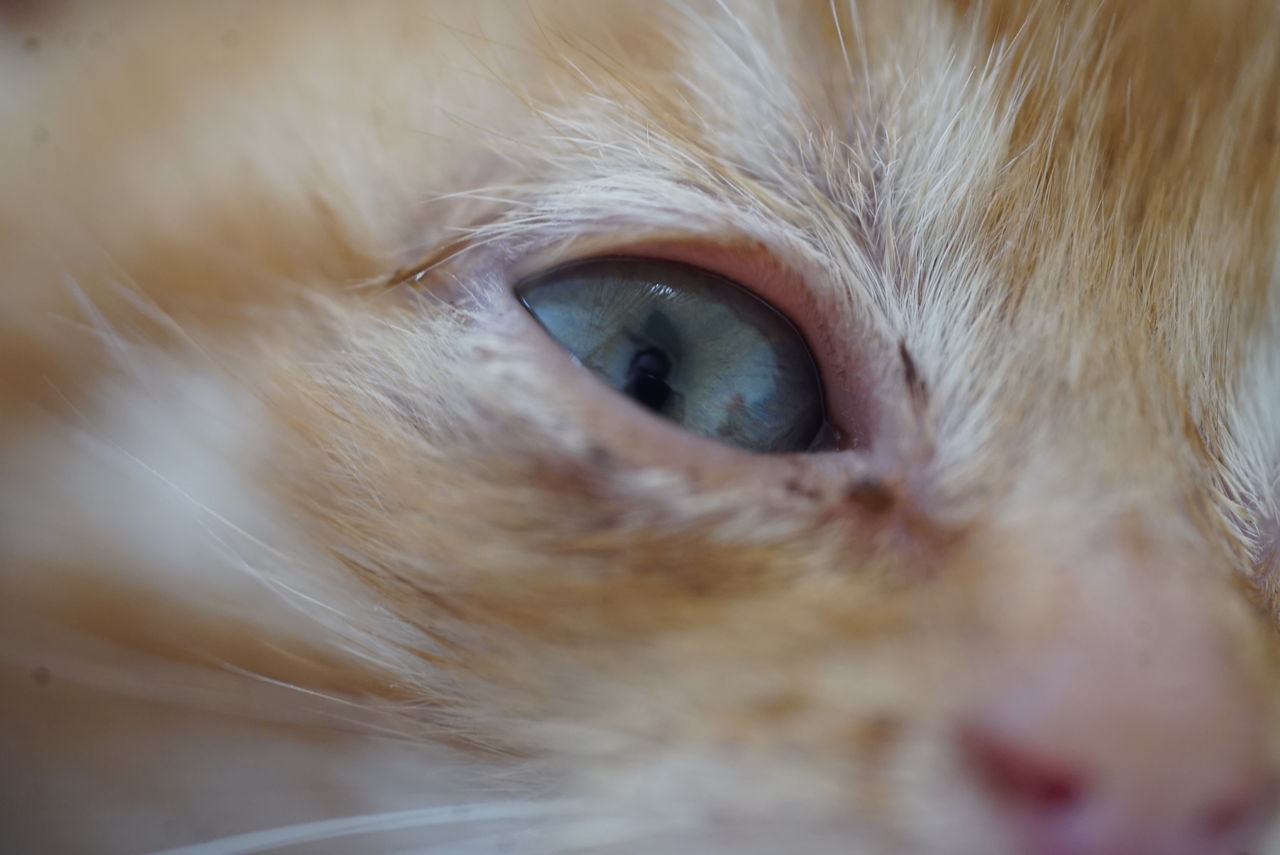 まだちょっと腫れぼったい眼をアップ。それでも黒目は立派に猫のそれです。