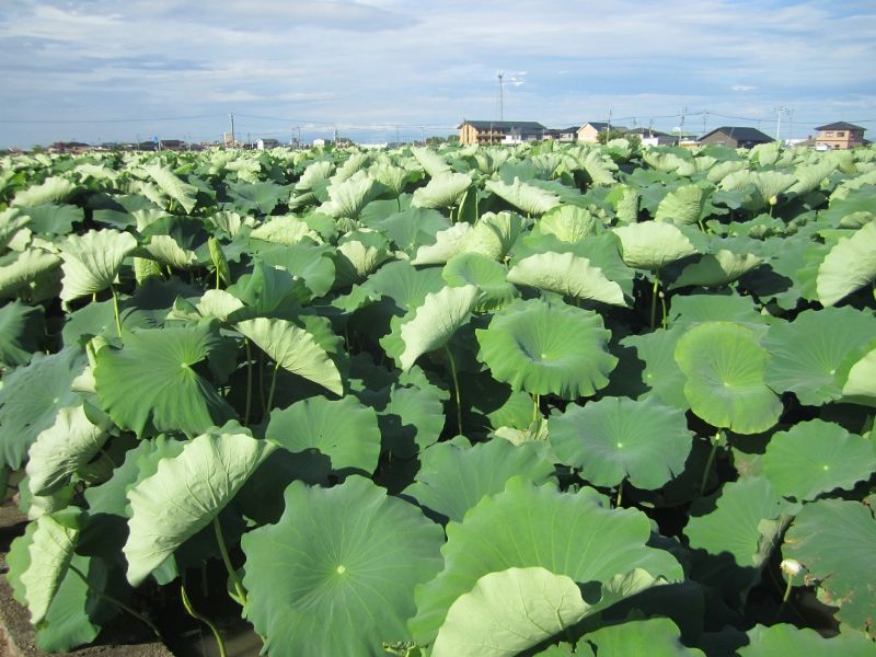散歩コースに蓮の水田が沢山あります。