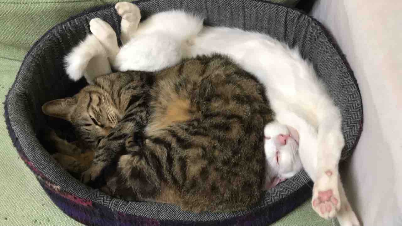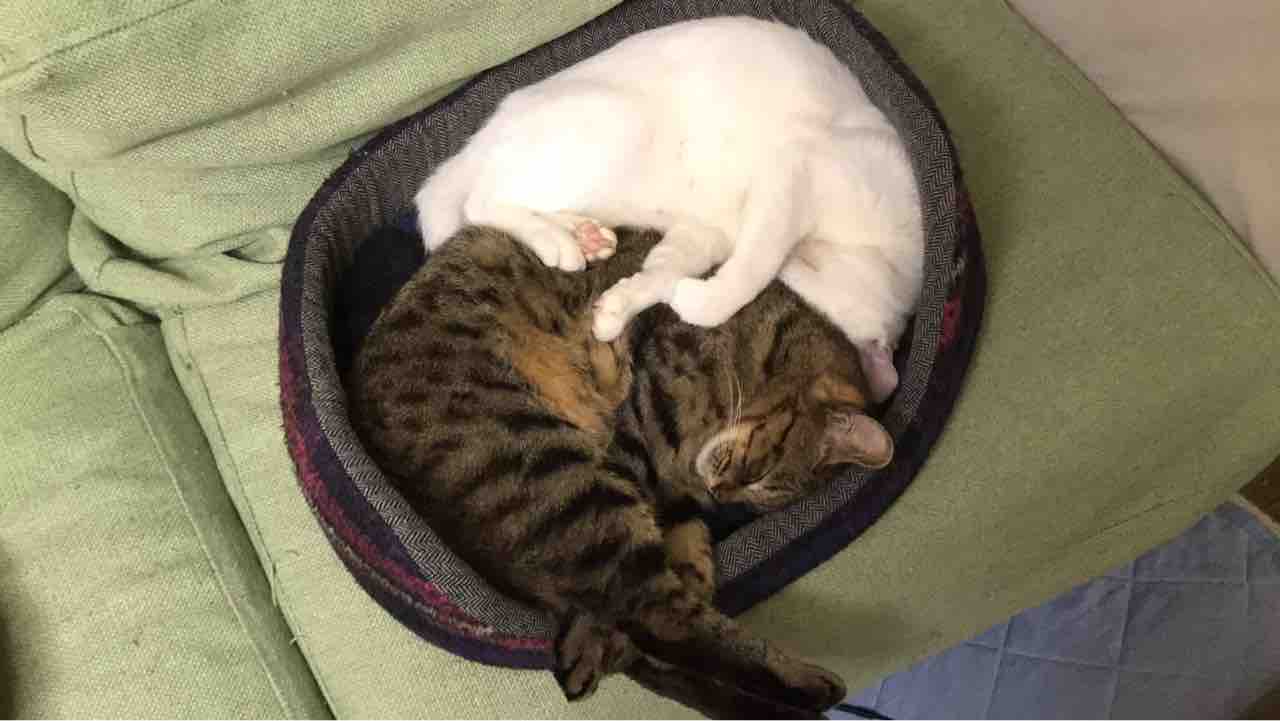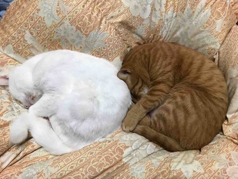 うちは三匹とも仲良いとは思いますが、それ以上に息がぴったりな瞬間が。 一緒に猫海老。 一緒に覗き込み。 一緒に謎寝相。 これもある意味、息がぴったりな合体謎寝相。 向きを変えて。 やはり家族になると似るものですね。 ランキングに参加しています。1日1クリック、なにとぞ おねがいしますm(_ _)m