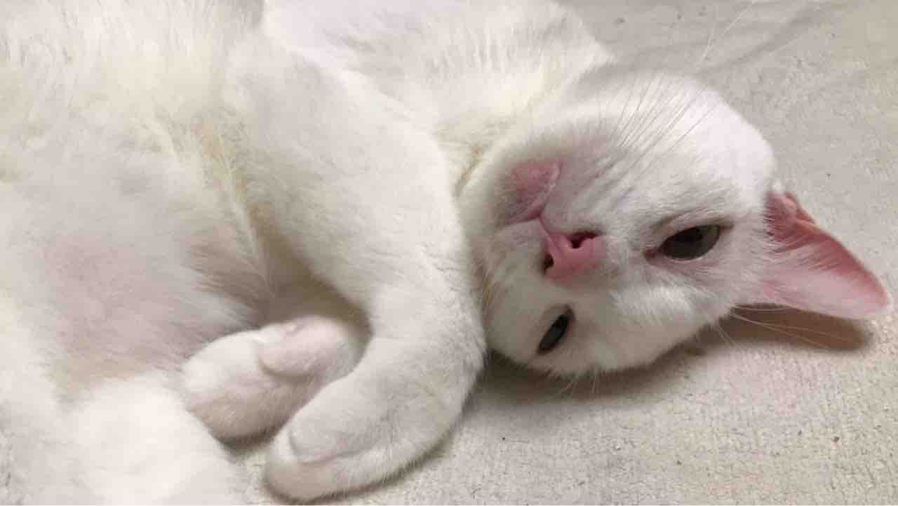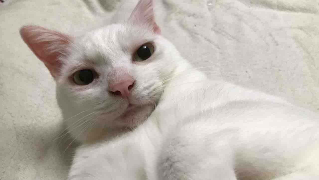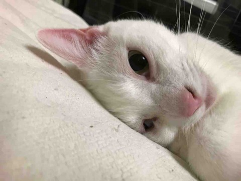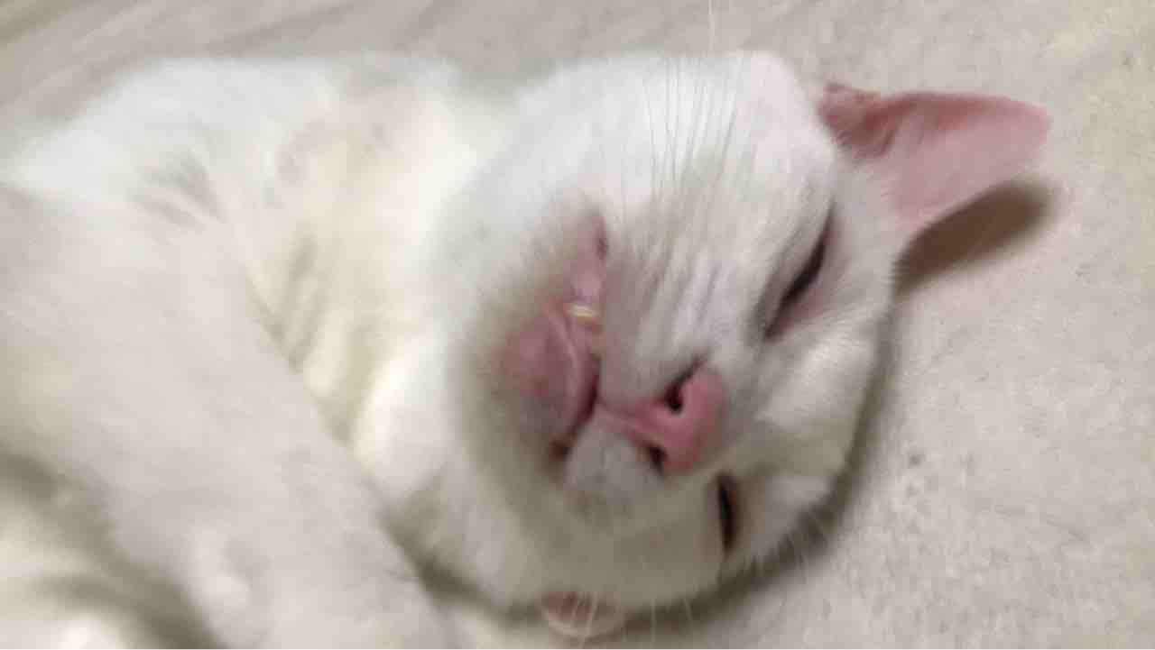 麿白先生は甘えるとき頭がめり込むので顔がつぶれます。