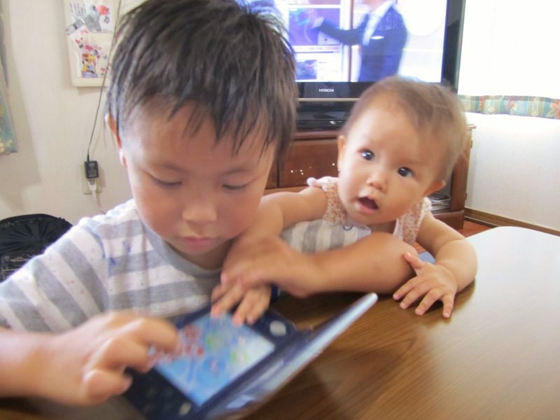 やって来た孫たち、怖くて触れません。