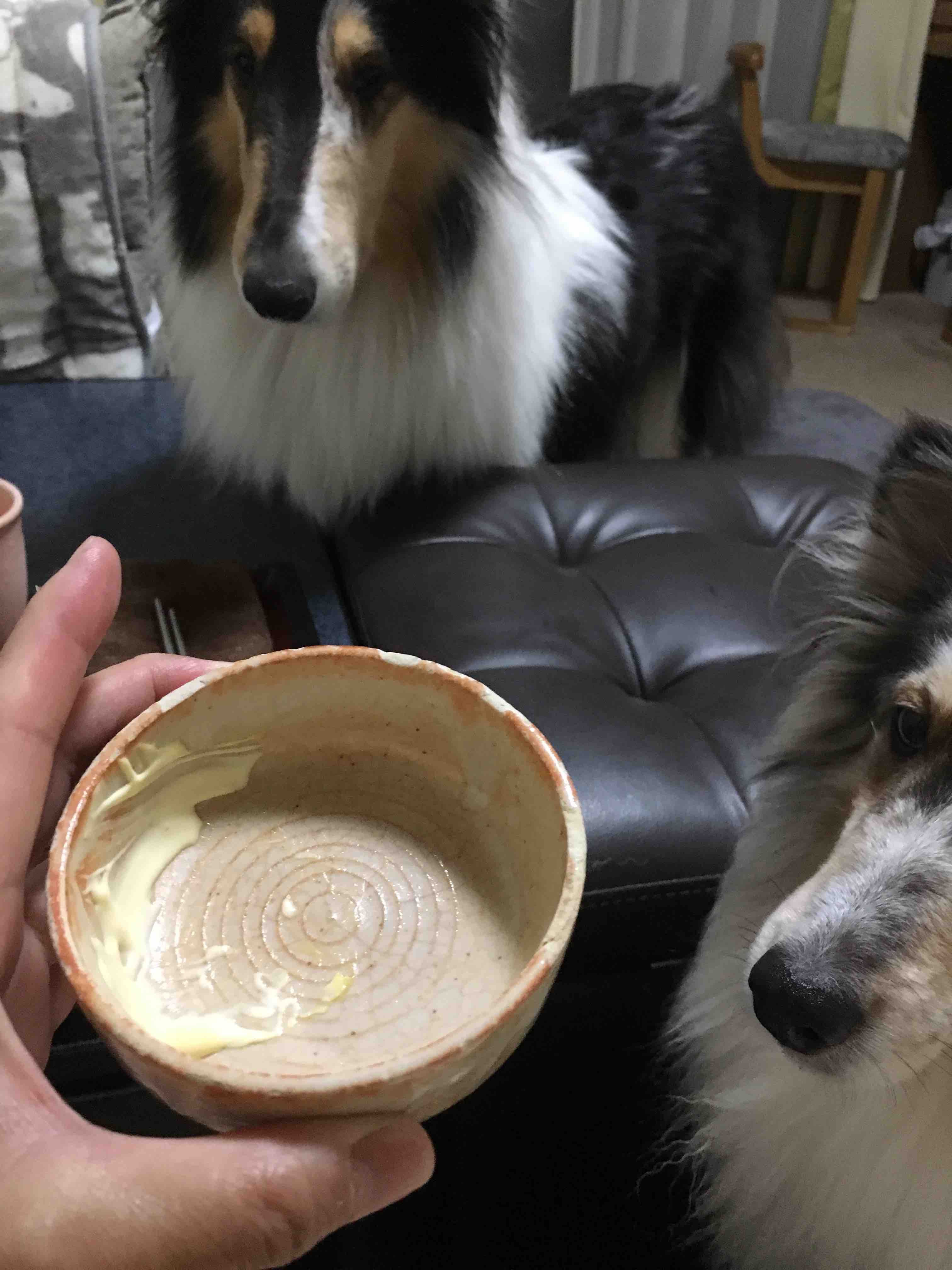 じゃこ天用のマヨネーズいっぱい舐めてる!