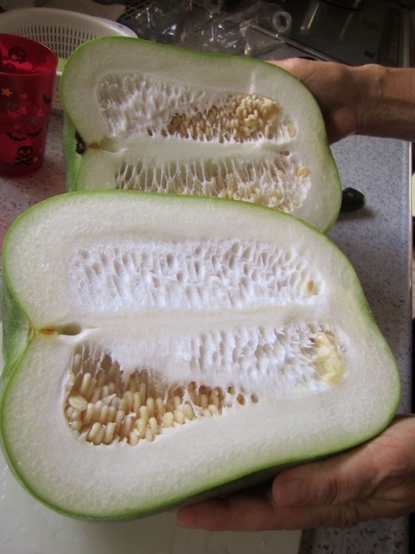今日も暑過ぎのため、あっさりした物が食べたいとのことで、我家の冬瓜を収穫してみました。