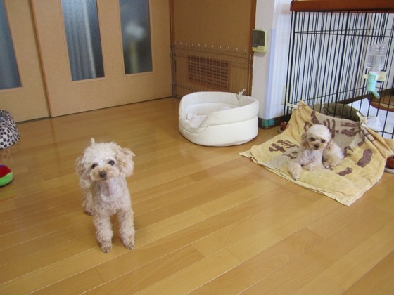 ワンちゃんたちは、エアコンの効いたお部屋でお利口にお留守番してくれてました。