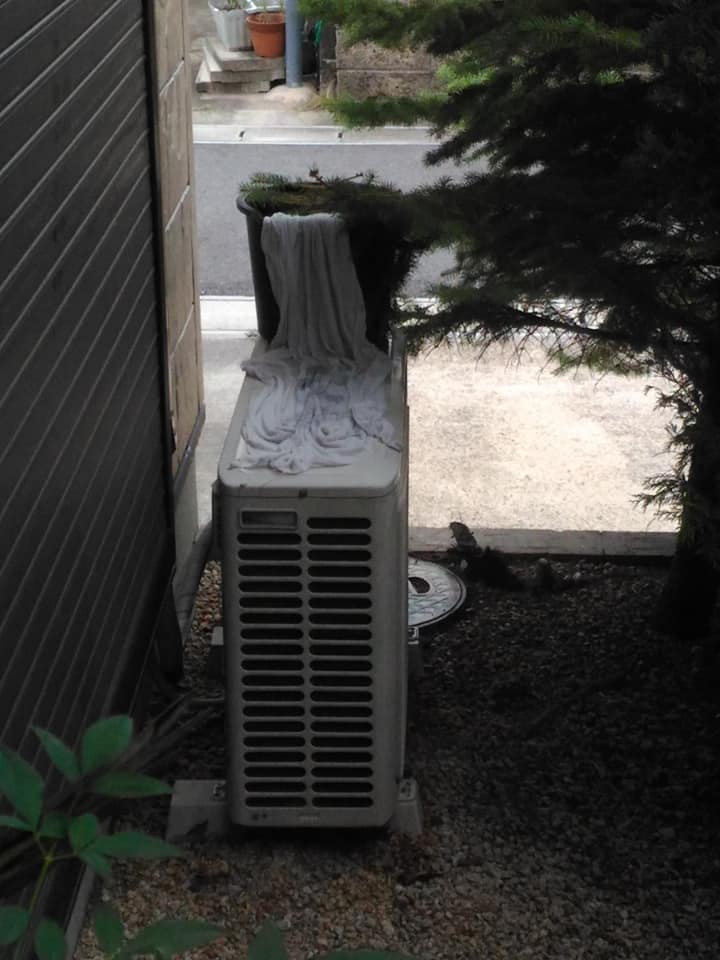 リビングのエアコンは植木の陰だけど、水冷してみました