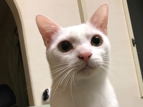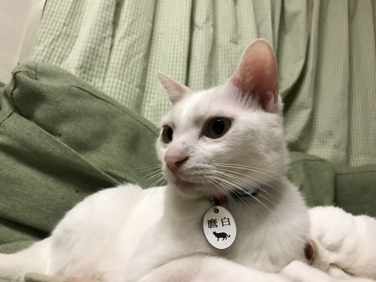 白猫かつ目の彫りが普通より深いゆえか?、眉間の表情がとにかく目立つ麿白先生。