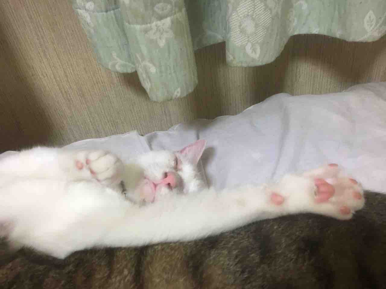 麿白先生は夜に寝ていれば添い寝をしに来て、休日家にいると添い寝に誘い、ふと見ると添い寝に誘ってるくらいの添い寝猫なのですが。