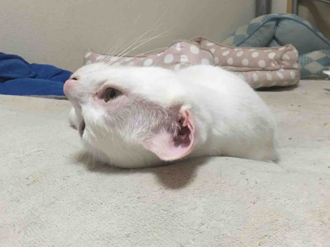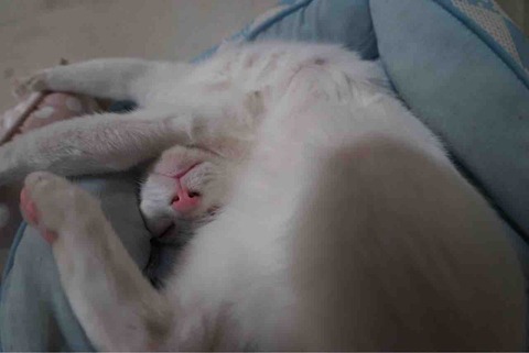 ひねりながら仰向けになり目を開けつつ熟睡。