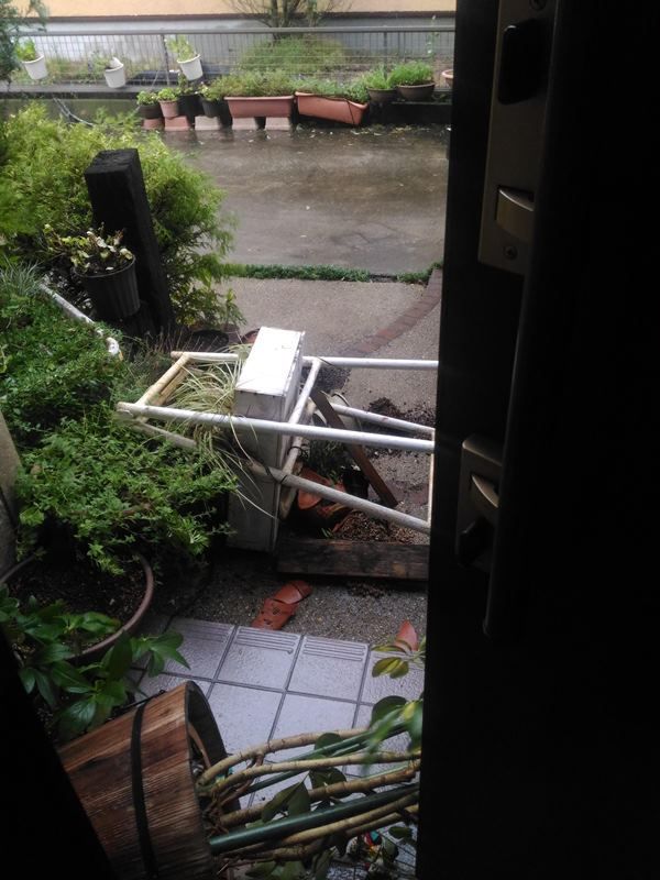 ユリ母渾身の作品を乗せたハシゴが倒れてるし