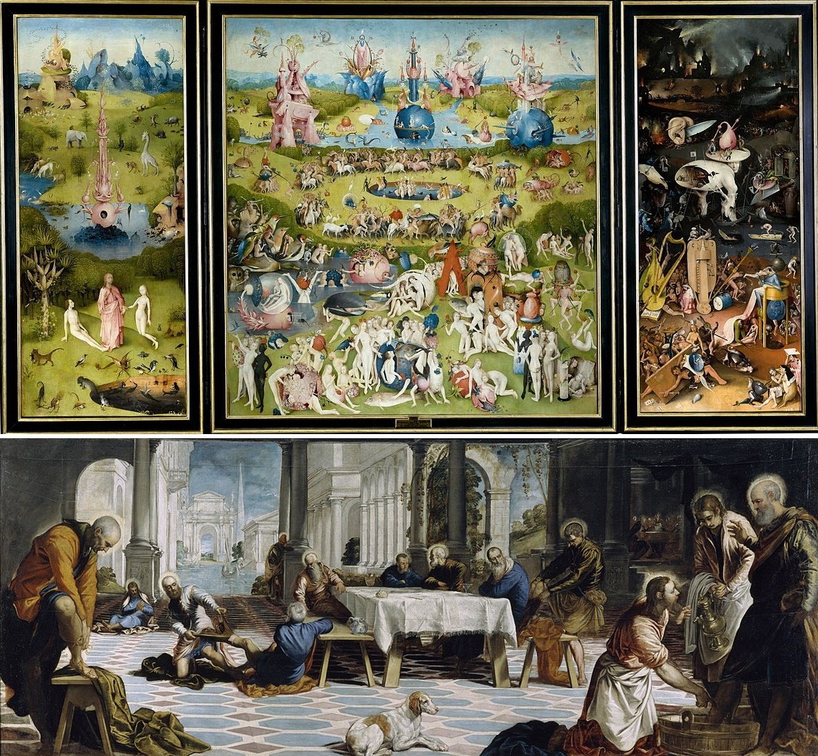 ボス(ボッシュ):快楽の園(上) ティントレット:弟子の足を洗うキリスト(下)
