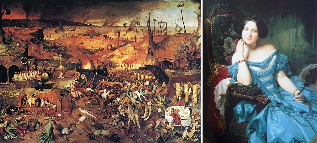 ビーテル・プリューゲル:死の勝利(左) マドラーソ:ビルチェス伯爵夫人の肖像(右)