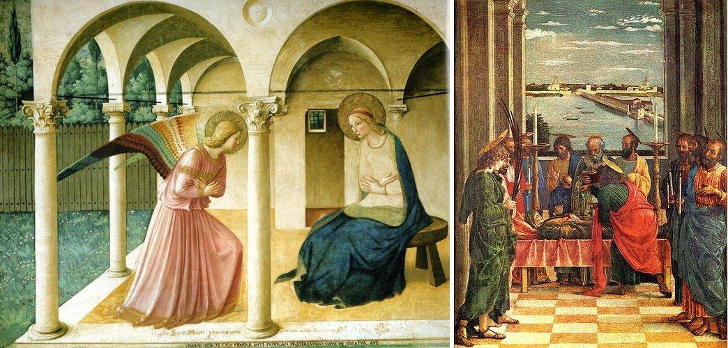 フラアンジェリコ:受胎告知(左) アンドレア・マンテーニャ:聖母被昇天(右)