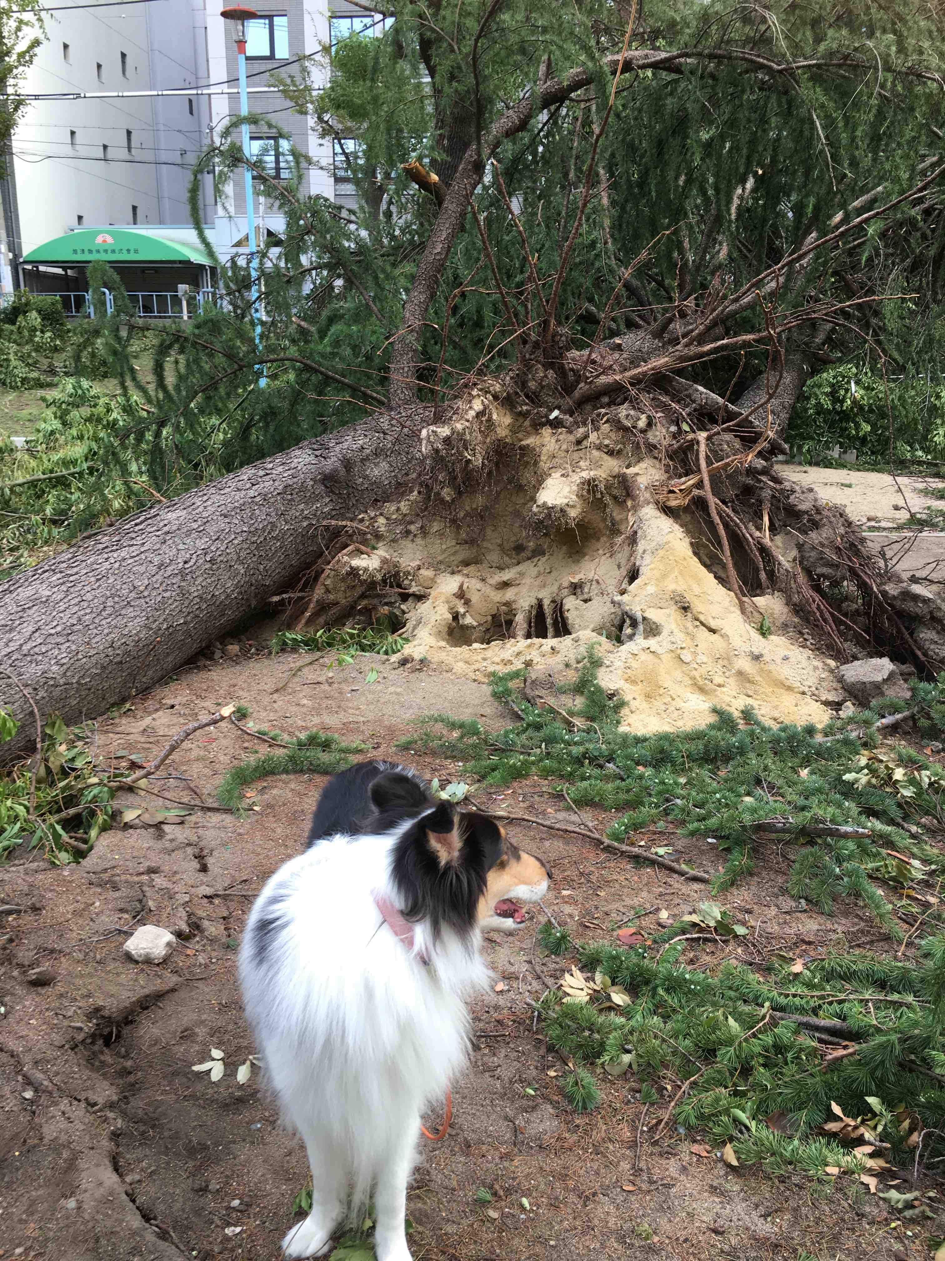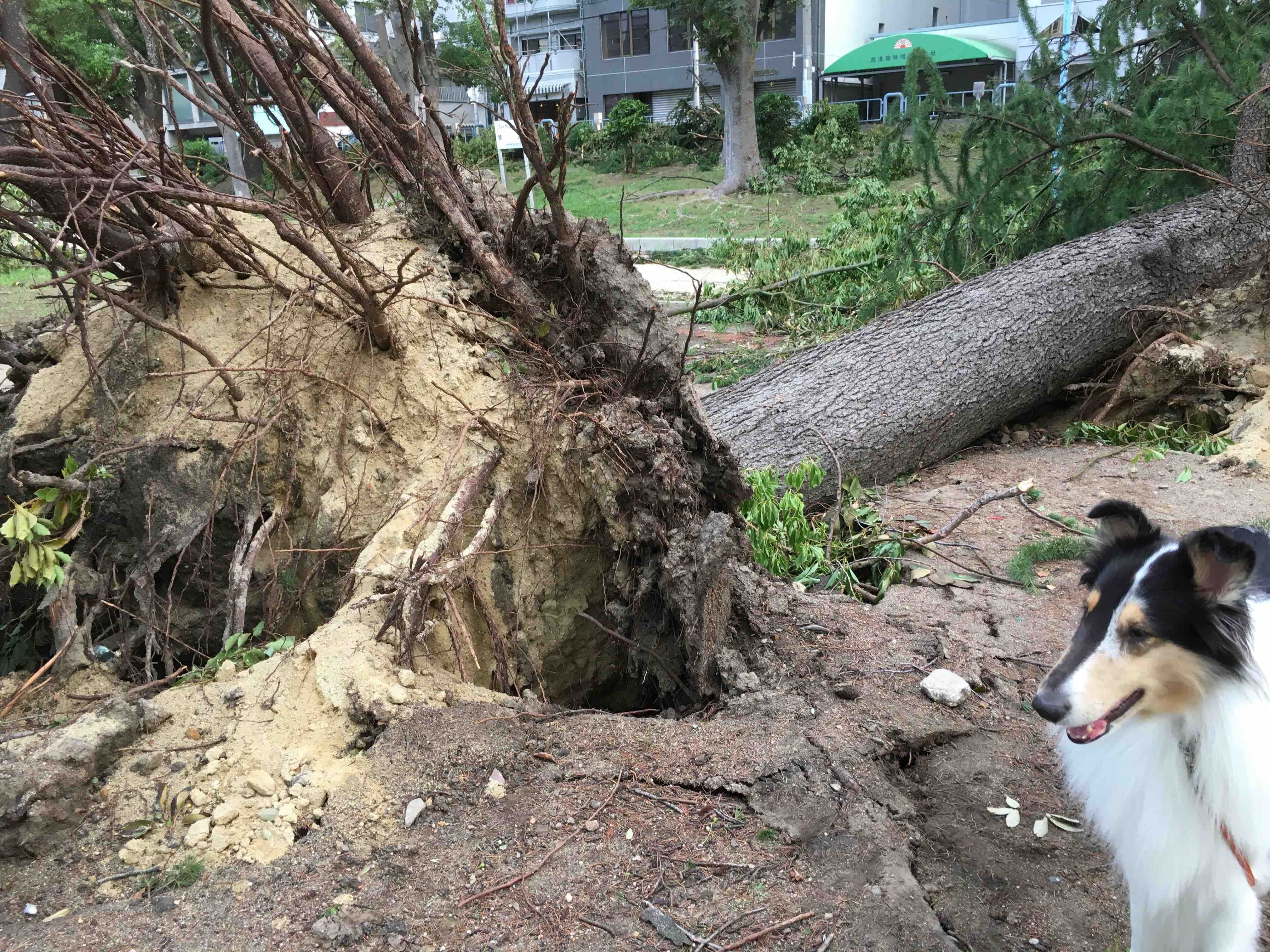 うちの裏も、大物が根っこを盛り上げさせ耐えていた。