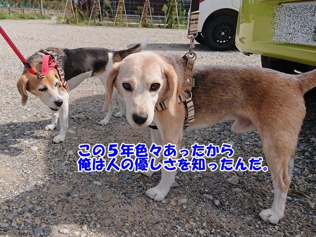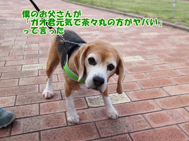 普段ひびこと一緒にいるからガオは普通のビーグルの大きさに見えてたけどやはりチャンピオン犬の茶々丸海老蔵と比べると逞しさが全然違います。