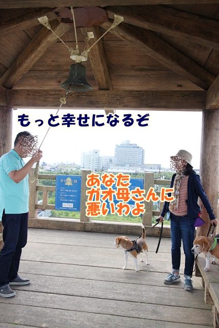 その前に『幸せへの鐘』を記念に鳴らす幸せ家族。