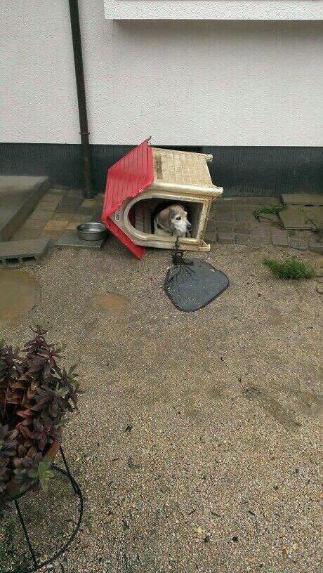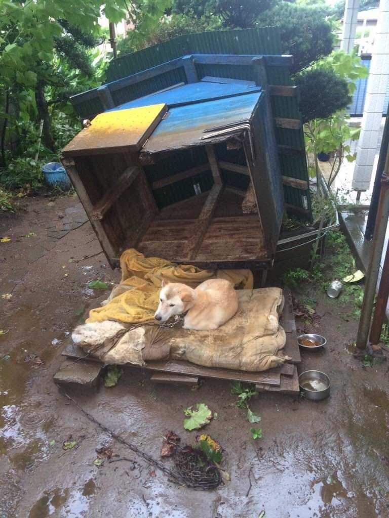 せめて台風の時ぐらい家に入れてあげる慈悲は無いのか、飼い主さんよ