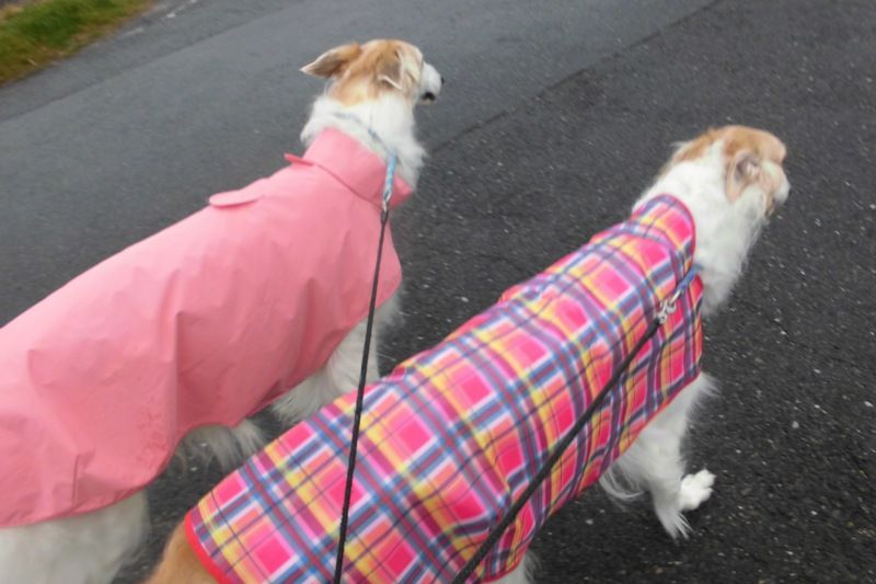 散歩は好きだけど、レインコートを着ての散歩は大嫌いなのだ