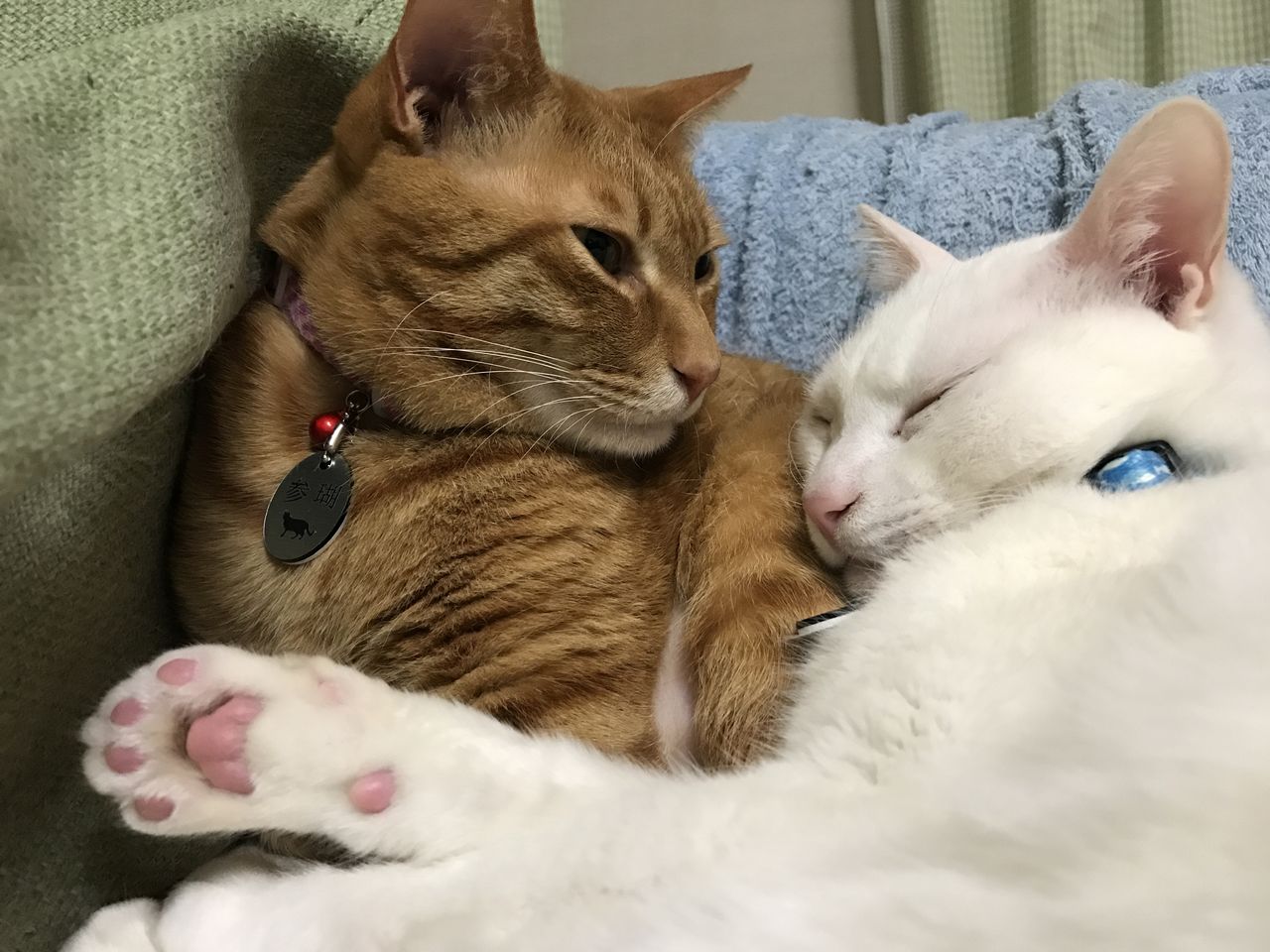 参瑚をクッションにして眠る麿白先生。