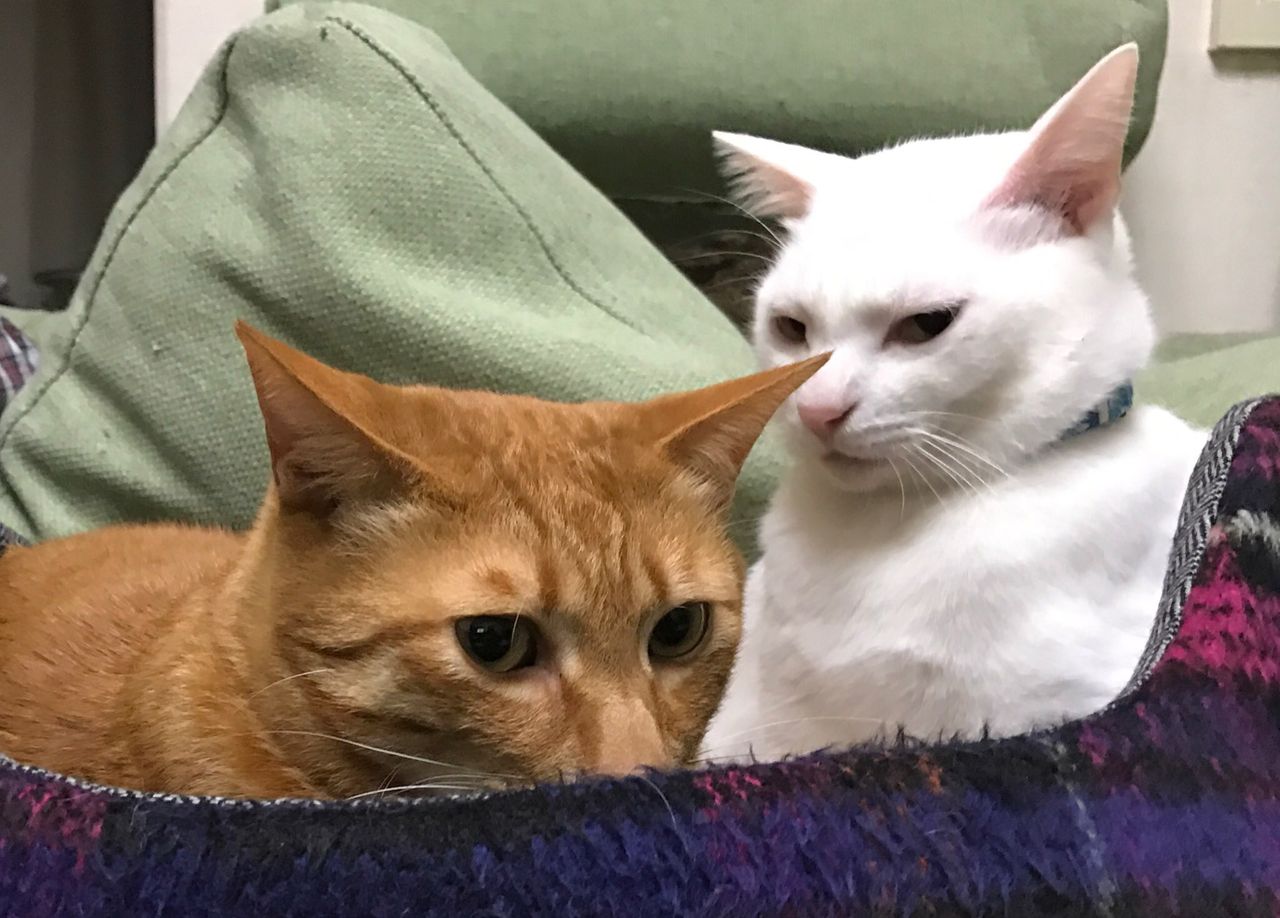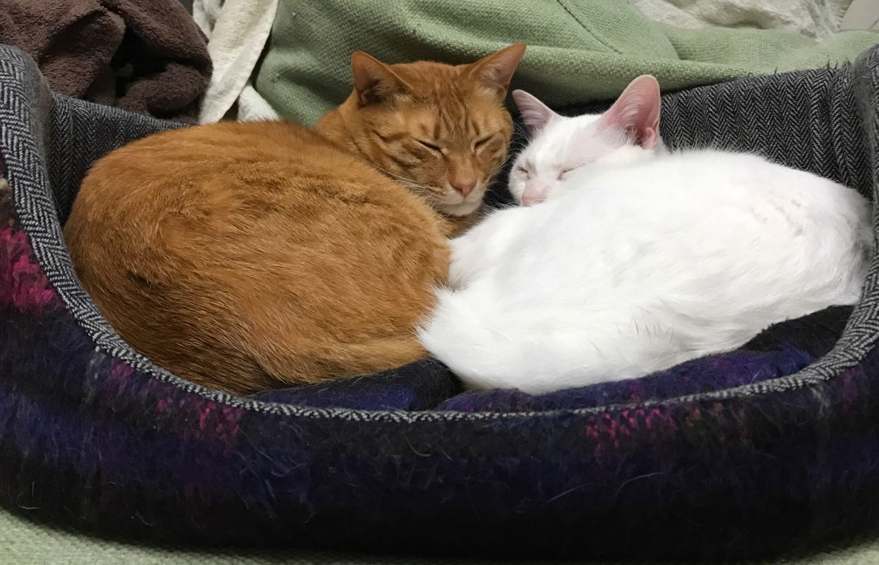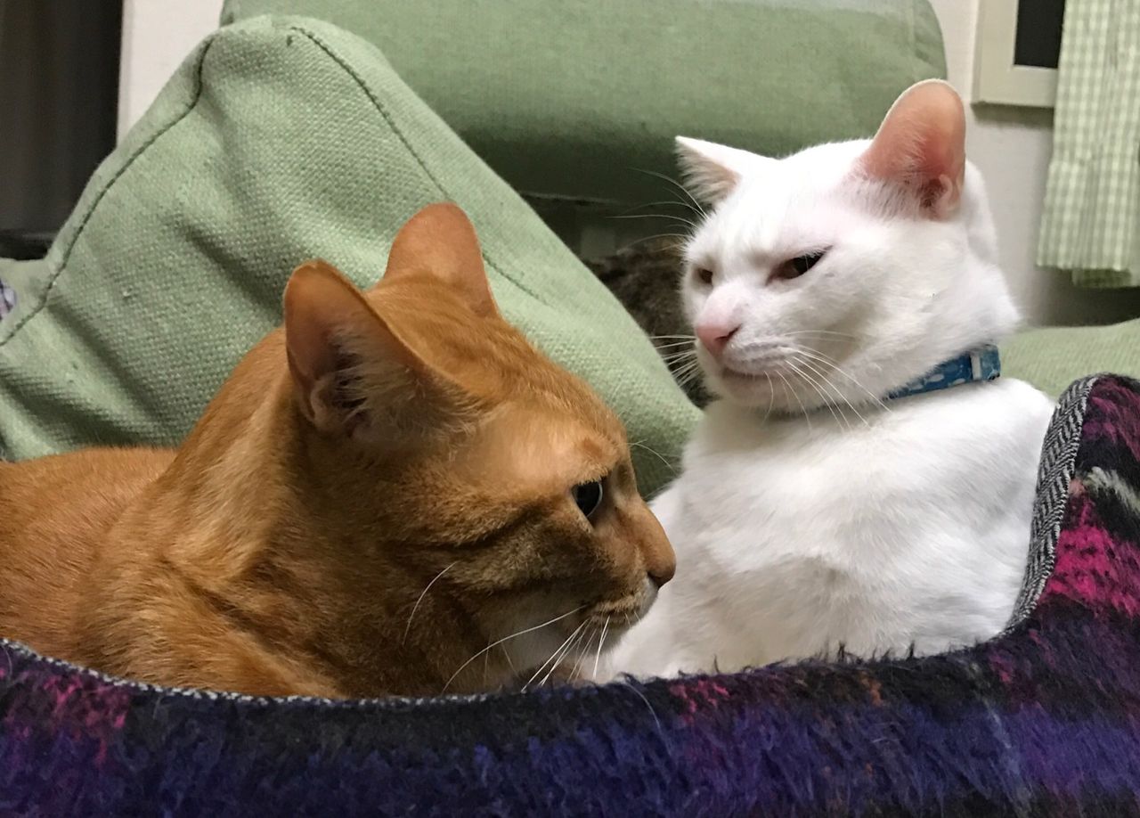 マロベッドを分け合う二匹のすがたが。