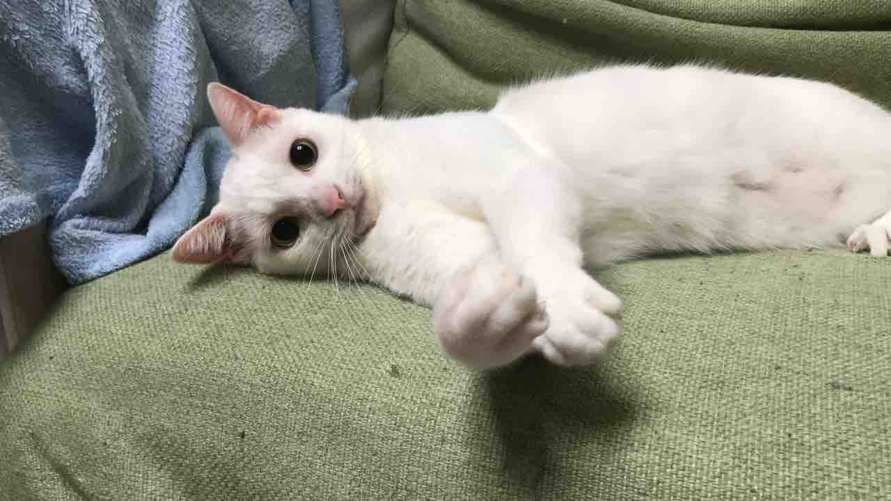 麿白先生の前で久しぶりにじゃらしを振ったら黒目だけになってしまいました。