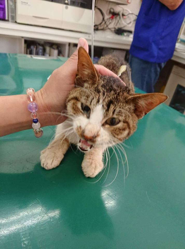 顔に大きなコブがあるので、保護して治療が必要です