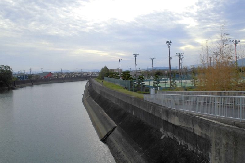 上流を眺めると、川が周りの地面より高いことが解るでしょ