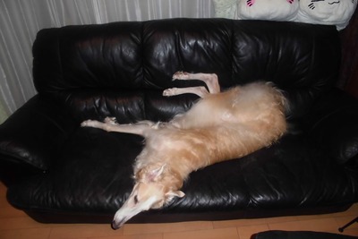 昼間はしっかりソファーで、今夜に備えて体力を温存中なのだ