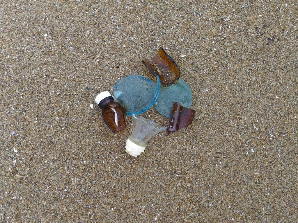 しかし気をつけないと、台風で荒れた海からシーグラスには程遠いガラス瓶の破片がいっぱい打ち寄せられている