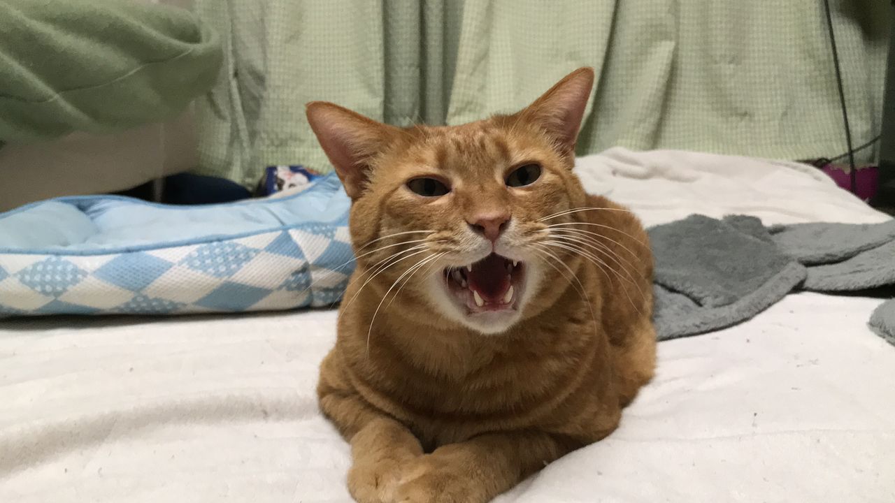 茶トラ3号時代の参瑚。触れればキレるナイフ猫でした。嘘です。