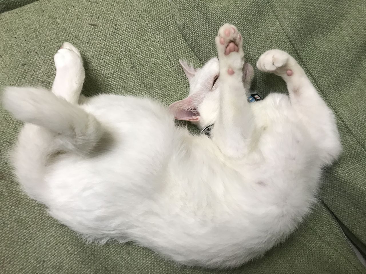 隙あらば謎寝相の麿白先生。続々と新しい寝相を開発していますが、傾向があるようでやらなくなった寝相もあります。
