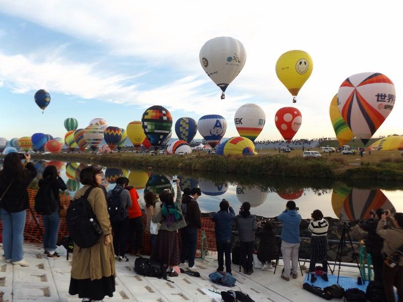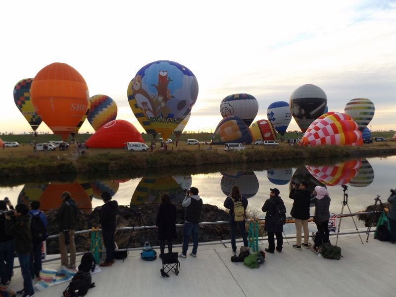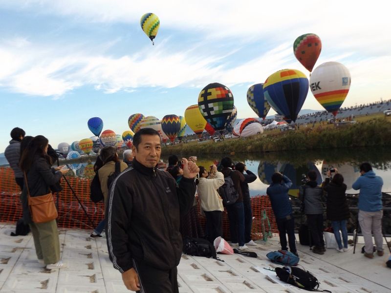 今朝は、妻のお伴でバルーンを見に行きましたよ。 ちょっと眠いね。 会場で見るより、対岸(西側)で見た方が、バルーンが自分の上空へ飛んでくるので迫力がありますよ 皆さん、水面に映るバルーンも絶好のシャッターチャンスのようで、既にアマチュアカメラマンが沢山居られました。 早朝は寒いので、完全防寒で来てます。 フライトを初めて見た妻は、たいそう感動してたようです。